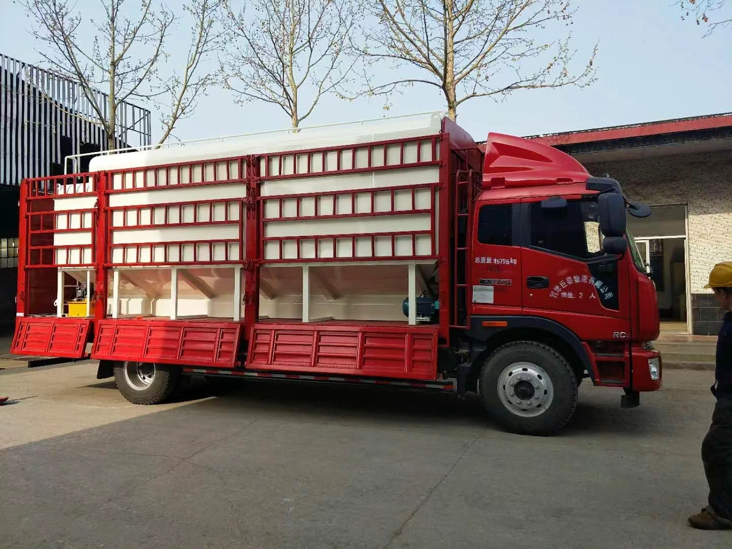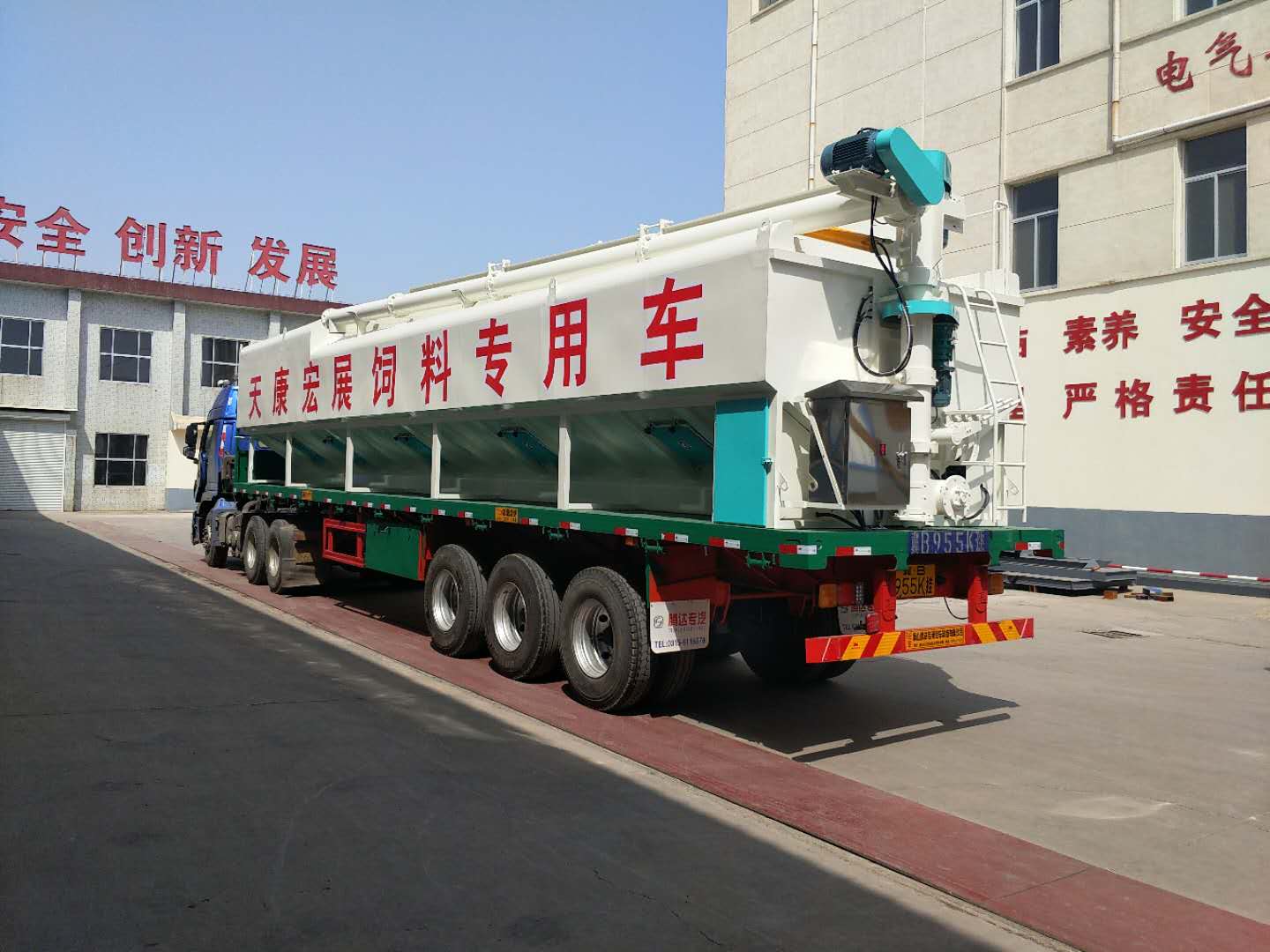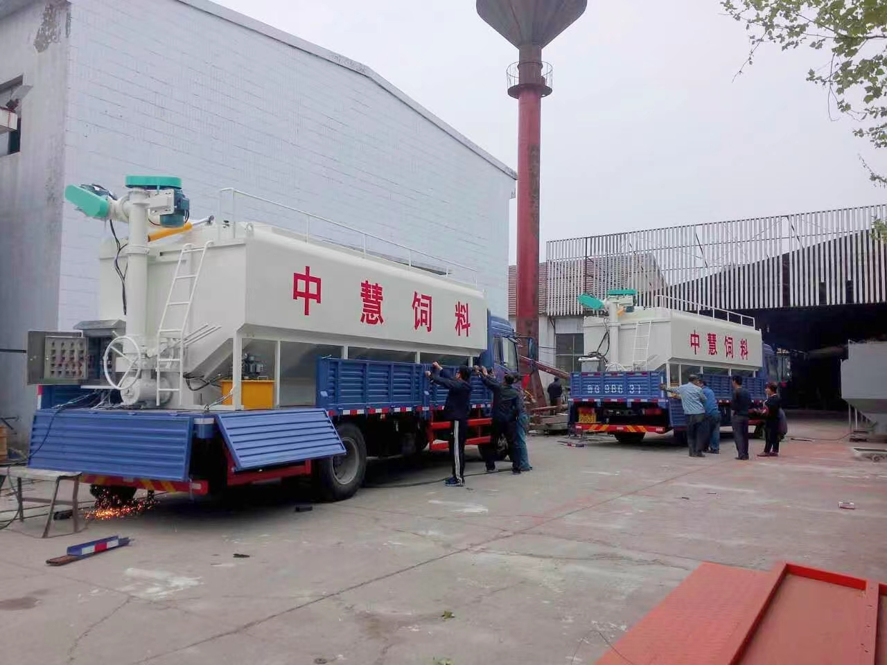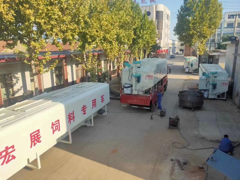 散裝飼料罐直接安裝在貨運車上,車、罐分體式組成。