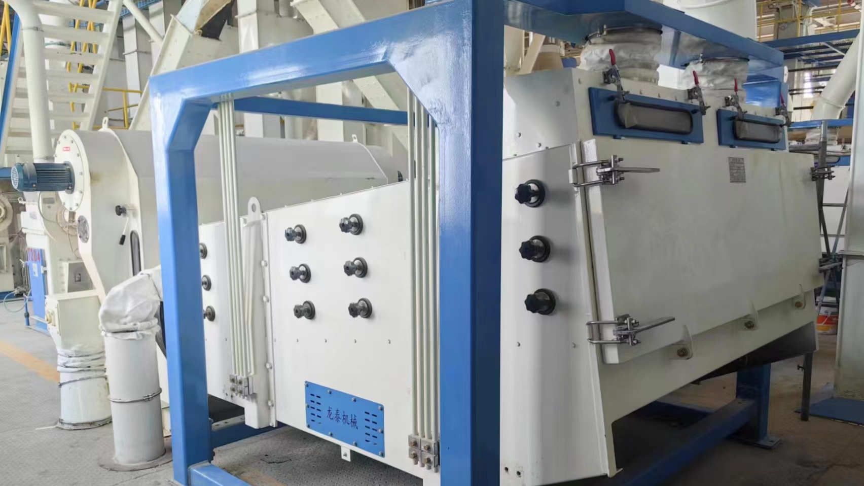 新型TQLX-4C系列四層高效旋振篩是在龍泰公司原二層旋振篩基礎上為進一步提高清理效率改進的產品。更好的解決糧食、飼料、化工等加工企業對多種原料(玉米、小麥、高粱、大麥、大豆等糧食類及酒廠原糧、食用油原糧、化工產品)清理的需求。