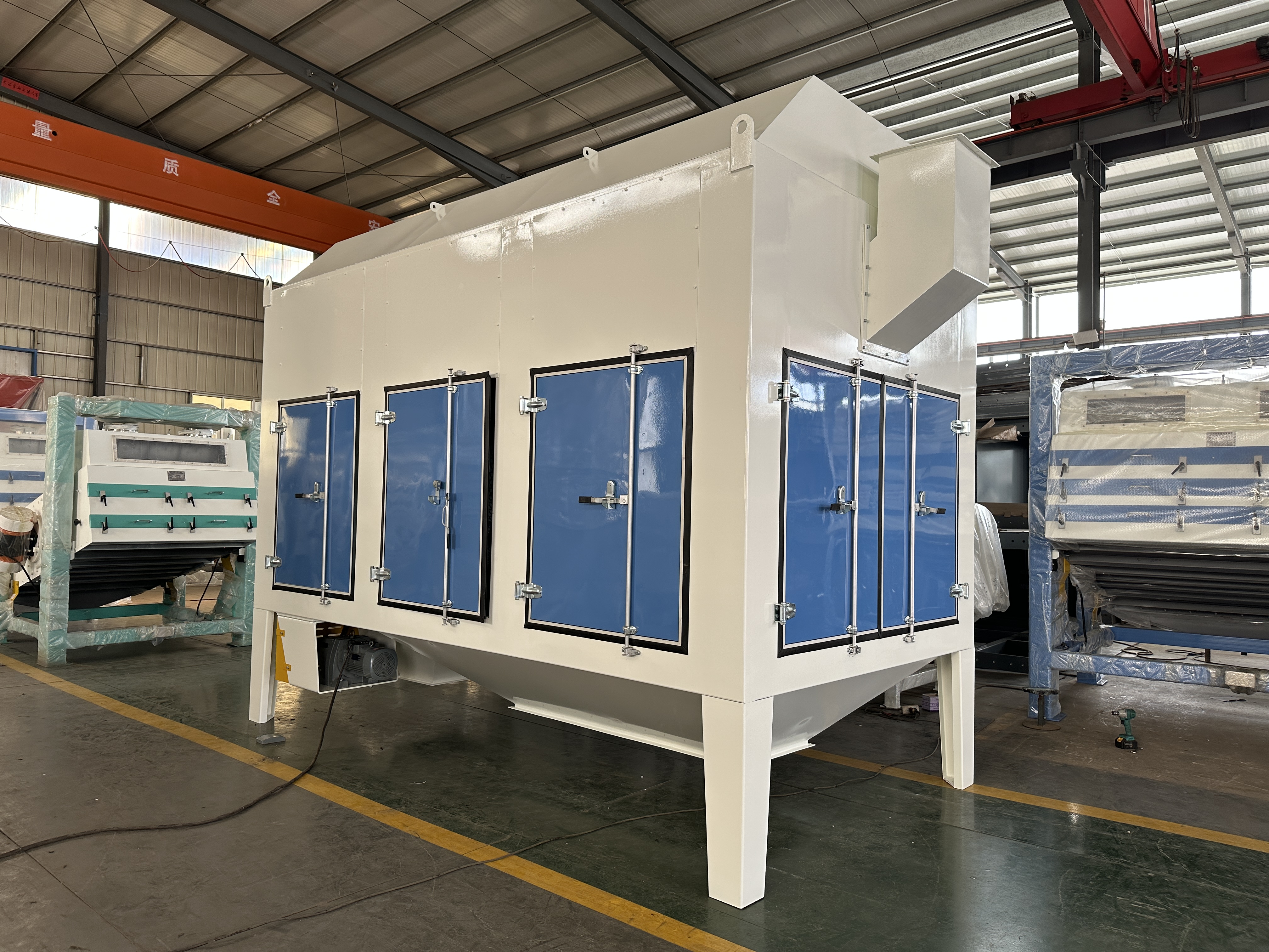 4. 雙層篩可有效地分離原料中的秸稈、石頭、麻片、結團物等大雜,同時清除原料中的小雜,成品出口預留有吸風口,與風網(wǎng)連接后,可清除輕雜;